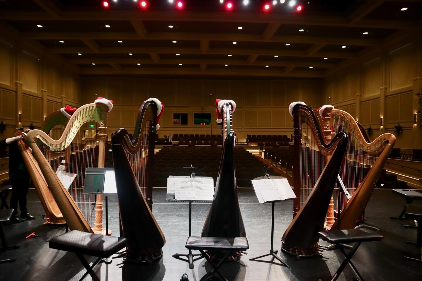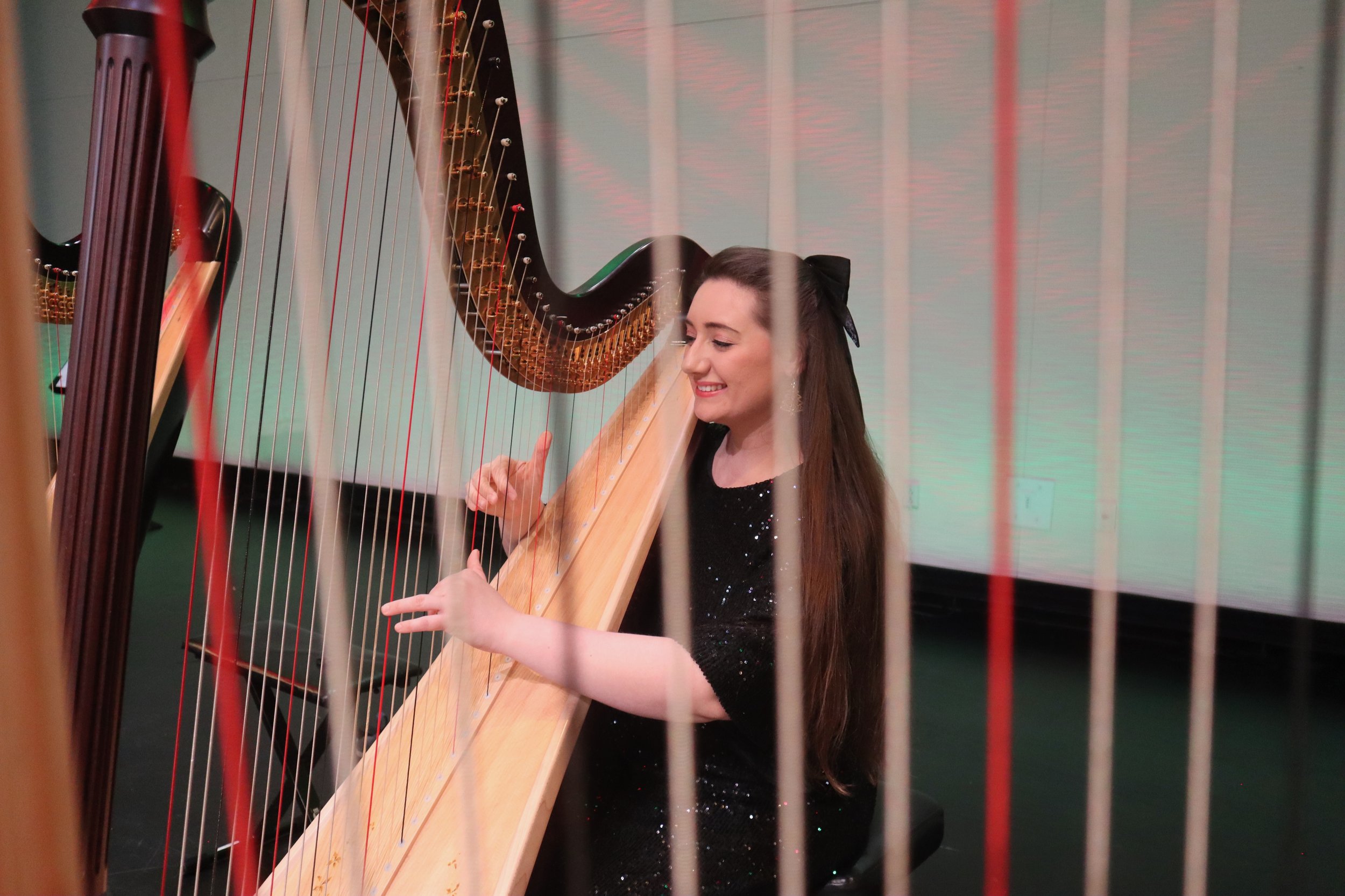 HARPISTS PERFORMING TOGETHER.